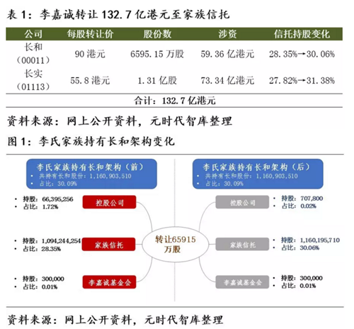 由于李嘉诚只是直接将持有的股份注入其名下的信托基金,故其在长和、长实的权益未有任何变动,而信托基金在长和、长实的持股,则分别升至26 %及27.13%。